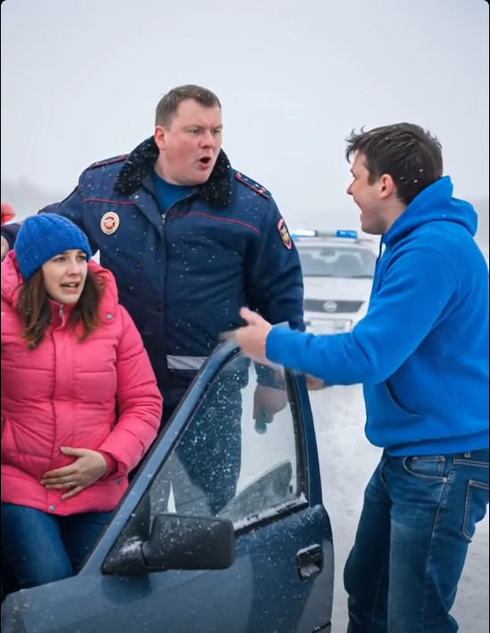 Na početku, scena je postavljena u neugodnim vremenskim uslovima, gdje se putovanje činilo kao velika borba. Sneg je neumoljivo padao, a vidljivost je bila gotovo nikakva. U tom okruženju, vozač i njegova trudna supruga suočili su se s neprekidnim bolovima koje je trudnica osjećala, dok su pokušavali doći do bolnice. Hitna pomoć nije mogla da stigne zbog snježne oluje, pa je par bio primoran da se oslanja samo na sebe. U tim trenucima, strah i neizvjesnost su se pojačavali, stvarajući osjećaj bespomoćnosti. Tada se pojavio inspektor, čiji je stav bio hladan i nepopustljiv, ignorirajući očiglednu hitnost situacije, kao da je zakonska pravila imala veću težinu od ljudskog života.