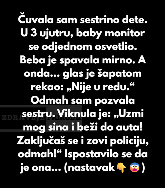 Jedne mirne noći, dok su zvijezde blistale na nebu, osjetila sam kako se tišina naglo prekida. U početku sam pomislila da je to samo još jedan manji tehnički problem, no zvučni signal baby monitora bio je samo početak nečega što će mi promijeniti percepciju o sigurnosti. Kada sam provjerila, moja beba je mirno spavala, a onda se iz monitora začuo tihi glas, gotovo poput šapta: „Nije u redu.“ Taj trenutak bio je poput hladnog tuša. U tom trenutku, instinktivno sam osjetila opasnost koja se nije mogla ignorisati, a srce mi je počelo brže kucati. Pitanja su se u tom trenutku počela nagomilavati: Ko govori? Šta se događa? I da li je moja beba u opasnosti?