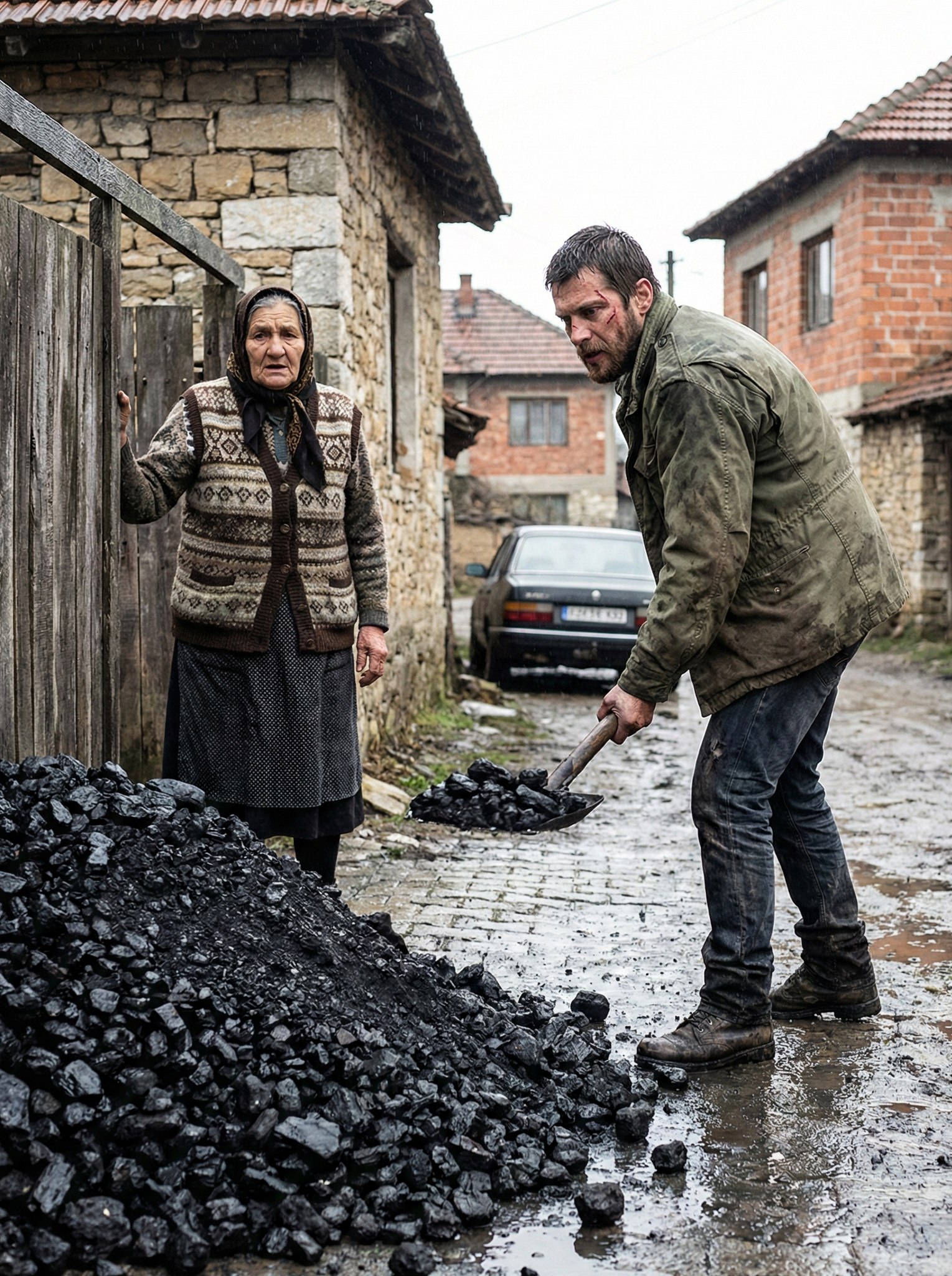 Tada se na sceni pojavio Milan, čovjek koji je nosio stigmu prošlosti. Bivši robijaš, često je bio predmet osuda i predrasuda komšija, ali je on, usprkos svemu, odlučio da pomogne. Gledajući kakvu muku prolazi Ruža, Milan je zaboravio na svoje probleme i počeo prenositi ugalj lopatu po lopatu. Bez obzira na hladnoću i kišu, njegova volja da pomogne bila je jača od bilo kakvih prepreka. Dok su ga susjedi posmatrali s prezirom, on je nastavio raditi, shvaćajući da ono što radi nije samo fizička pomoć, već i čin ljudskosti. Njegov primjer pokazuje da su najvažniji trenuci u životu često oni u kojima postavljamo tuđe potrebe ispred vlastitih.