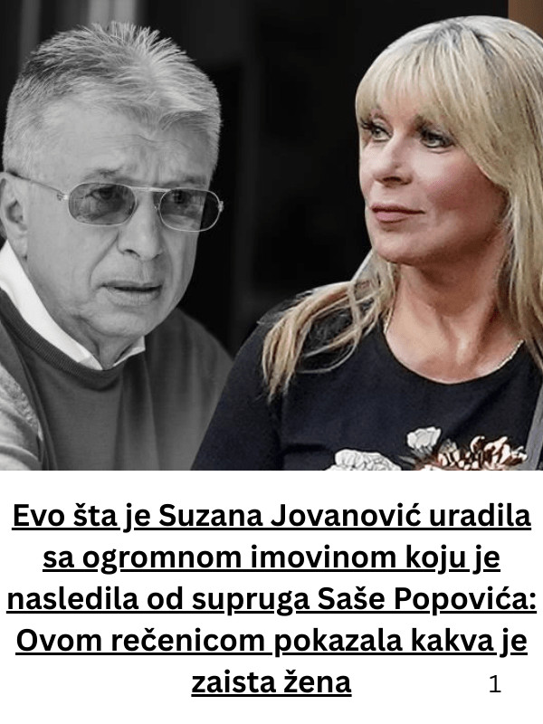 U savremenom društvu, pitanje o značaju materijalnog nasljeđa u odnosu na duhovne vrijednosti koje čovjek nosi kroz život sve više dolazi do izražaja. Ova tema posebno postaje relevantna kada sagledamo životni put Suzane Jovanović, udovice poznatog muzičara Saše Popovića. Nakon njegove smrti, Suzana je došla u posjed značajnog imanja koje uključuje luksuzne nekretnine, automobile i druge materijalne vrijednosti. Međutim, njen fokus nije na bogatstvu i materijalnim užicima, već na vrijednostima koje novac ne može kupiti – mir u duši i emocionalna povezanost.