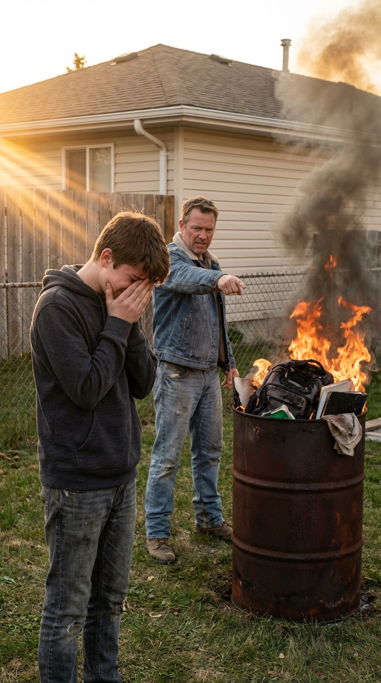 Na početku ove priče, mladić se suočava s teškim uslovima života pod okriljem svog oca, čoveka koji je verovao da ljubav podrazumeva kontrolu i dominaciju. Njegov otac nije samo fizički i emocionalno zlostavljao sina, već je i srušio sve što je za njega imalo vrednost. U jednom trenutku besa, otac mu je spalio sve lične stvari, uključujući i poslednju fotografiju njegove majke. Ovaj brutalni čin bio je kulminacija njihovog sukoba; sin je želeo slobodu, dok je otac želeo potpunu kontrolu. Osećaj nevoljenosti i iskorišćenosti doveo je do konačne odluke – napustiti dom i krenuti ka neizvesnoj budućnosti.