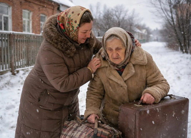 Jedne zimske noći, kada su ulice bile pokrivene slojem snijega, mlada majka se vraćala kući nakon dugog i iscrpljujućeg dana na poslu. Hladnoća je prodrla do kostiju, a noć je bila tiha i mirna. Dok je hodala, osjetila je potrebu da se zaustavi. Na rubu ulice primijetila je stariju ženu, koja je stajala s dva iznošena kofera i starom torbom u rukama. Ženin izraz lica bio je tužan i izgubljen. Mlada majka je u tom trenutku osjetila duboku empatiju prema starici, koja je očigledno bila u nevolji.