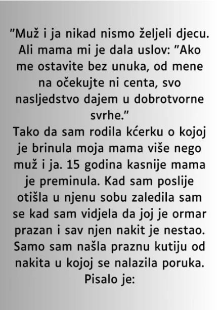 Ova žena, koja nije imala namjeru da postane majka, suočila se sa neobičnim uslovom svoje majke. Bez obzira na njen lični izbor, majka joj je postavila ultimatum: “Ako me ostavite bez unuka, ne očekujte ništa od mene.” Ova situacija nije samo osobna tragedija, već i odraz kako porodične norme i očekivanja mogu uticati na pojedinačne odluke. U mnogim kulturama, roditelji imaju svoje vizije o tome kako bi njihova djeca trebala živjeti, što može dovesti do sukoba između ličnih želja i porodičnih obaveza. Ovaj aspekt odnosa može stvoriti dodatni pritisak, posebno kada su u igri emocije, tradicija i nasljedstvo.