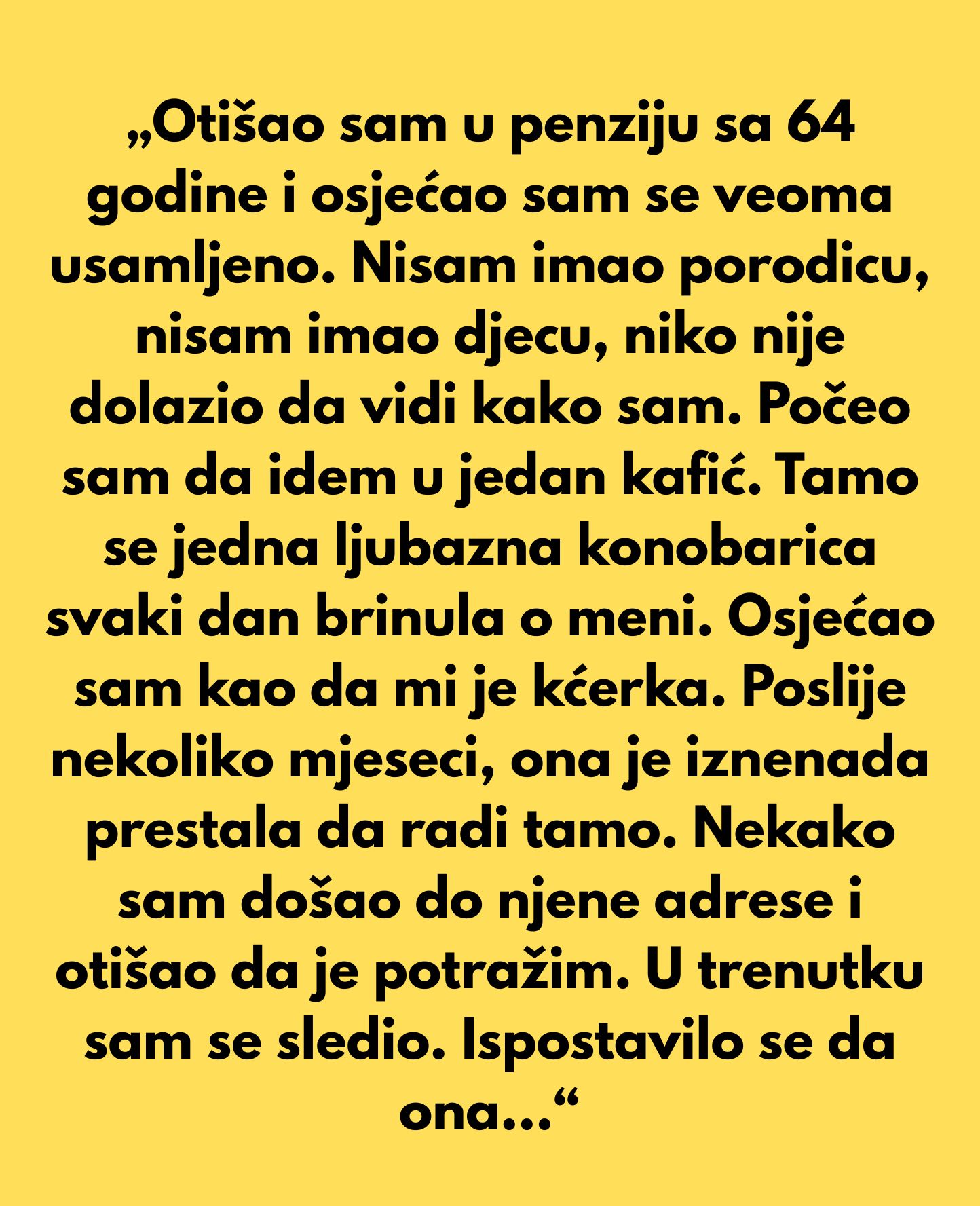 Kada sam se povukao iz radnog života sa 64 godine, osjećao sam se kao da sam zakovan za svoje četiri zida. Usamljenost me obavila poput guste magle, što je dodatno otežavalo moju svakodnevnicu. U mom životu nije bilo porodice, niti djece; svaki dan prolazio je bez posjeta ili poziva prijatelja. U toj tjeskobi, odlučio sam pronaći izlaz i često sam počeo posjećivati kafić u blizini svog stana. Bio je to skromni kafić, ali u njemu sam našao nešto što nisam očekivao – ljudsku toplinu i prijateljstvo.