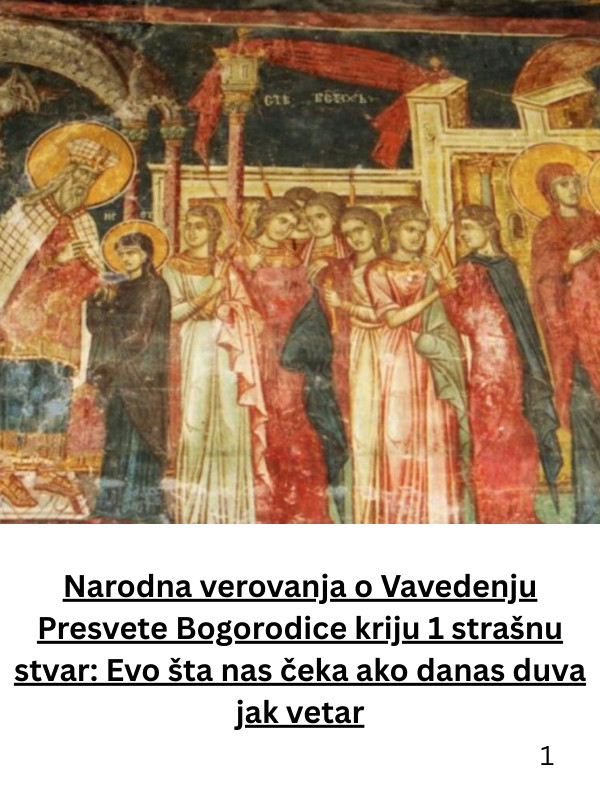 Danas, 4. decembra, pravoslavni vernici širom sveta obeležavaju jedan od najvažnijih crkvenih praznika, Vavedenje Presvete Bogorodice. Ovaj dan ima poseban značaj u pravoslavnoj tradiciji jer se slavi trenutak kada je Bogorodica, kao malo dete, prvi put uvedena u Božji hram. Na taj način je postala prva zavetovana devica, što je od suštinske važnosti u hrišćanskoj religiji.