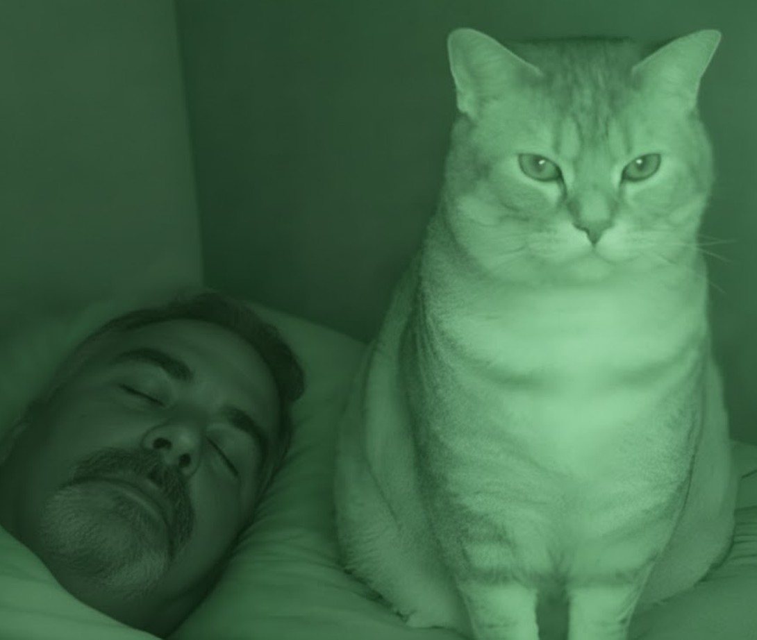 Ova priča počinje u spavaćoj sobi gde je par uživao u noćnom snu, ali su ubrzo primetili da nešto nije u redu. Svake noći, žena se budila s osećajem da ih neko pažljivo posmatra. Ovaj čudan osećaj nije dolazio iz nigdje; činilo se kao da je neki nevidljivi posmatrač u sobi. Nakon nekoliko noći, otkrili su da je njihova mačka, inače mirna i tihi član porodice, zapravo ta koja ih posmatra. Ova situacija je otvorila vrata za razmišljanje o tome koliko su naši ljubimci svesni onoga što se dešava oko njih i koliko su spremni da reaguju na naše emocije.