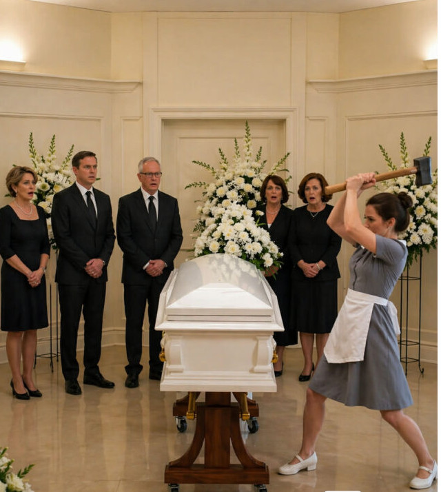 Iznenada, trenutak je prekinuo vrisak. Ovaj zvuk nije bio obična reakcija na gubitak, već nešto duboko i instinktivno. Čistačica, žena koju niko od prisutnih nije primijetio, postala je fokus cijele situacije. Umjesto da se povuče, njene oči su bile uprte u kovčeg. U tom trenutku, ona je učinila nešto što niko nije mogao zamisliti – zgrabila je alat i snažno udarila u drvo kovčega. Njena akcija nije samo bila šokantna, već je izazvala lavinu osjećanja među okupljenima. Kako je moguće da jedna obična žena, čija je uloga bila da održava čistim prostor, postane simbol otpora protiv smrti?