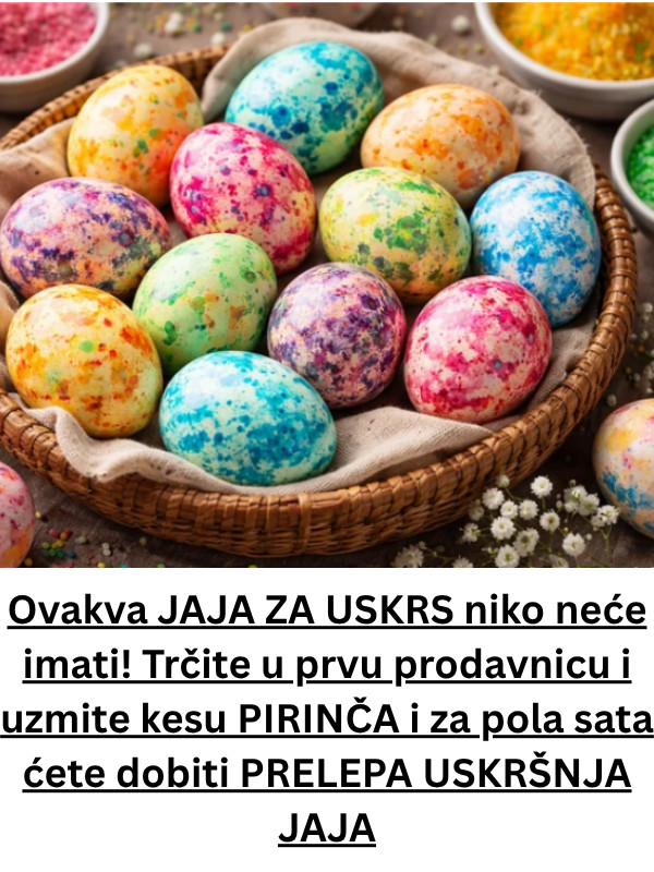 Ova jednostavna i zabavna tehnika farbanja jaja uz pomoć pirinča savršen je način da personalizujete vašu uskršnju dekoraciju i unesete dašak kreativnosti u svoj dom. Djeca će obožavati ovaj proces, a rezultati će biti zapanjujući — jaja koja izgledaju poput pravih umjetničkih djela, s jedinstvenim šarama i bojama koje donose posebnu svečanost u vaše proslave. Ova tehnika ne samo da obogaćuje uskršnje tradicije, već i stvara uspomene koje će trajati cijeli život. U to ime, okupljajte se sa porodicom, uživajte u kreativnosti i neka Uskrs bude pun radosti, ljubavi i izražavanja kroz umjetnost.