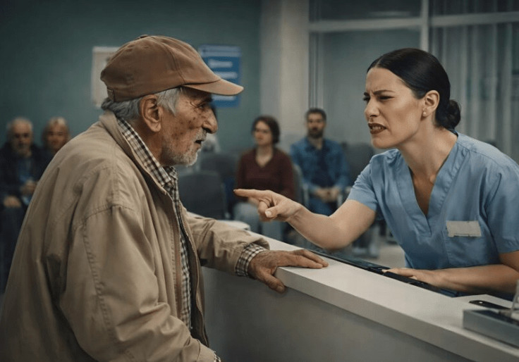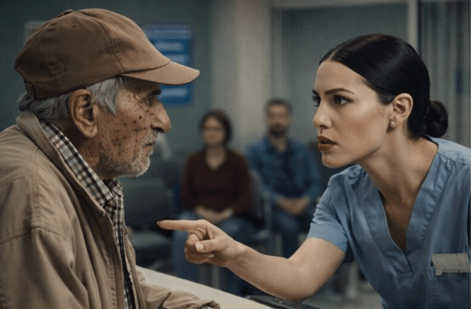 Priča započinje u bolnici, gdje stariji čovjek ulazi sa štakom, obučen u izlizanu jaknu i starinski šešir. Njegov izgled odražava život ispunjen borbom i izazovima, ali mnogi ga posmatraju s prezirom. Kada je prišao prijemnom pultu tražeći doktora, njegova tiha i skromna molba naišla je na potpunu ignoranciju medicinske sestre. Bez da ga pogleda, sestra mu je rekla da čeka svoj red, ostavljajući ga s osjećajem odbačenosti. Kada je konačno podigla pogled, njena reakcija je bila još negativnija. Njegov miris, koji je odražavao njegov težak život, izazvao je njenu gađenost i prekorila ga je, govoreći da je ‘previše prljav’ da bi bio u bolnici.