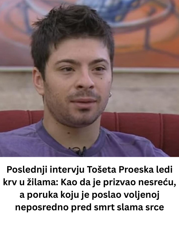 Toše Proeski preminuo je u tragičnom saobraćaju u oktobru 2007. godine, a vijest o njegovoj smrti šokirala je cijeli Balkan. Samo sedam sati prije smrti, u televizijskom intervjuu, izgledao je povučeno, govoreći o stresu i pritiscima koje nosi sa sobom. Njegove riječi sada se smatraju njegovim tišim priznanjem o tome koliko je slava zapravo težak teret. Mnogi su se tada pitali da li su postojali znakovi koji su mogli upozoriti na njegovu sudbinu, a razne teorije i spekulacije o uzrocima nesreće šire se i danas. Na dan njegove smrti, Toše je putovao iz Zagreba ka Skoplju kada se dogodila nesreća. Njegovo vozilo se sudarilo sa kamionom, a vijest o njegovoj smrti brzo se proširila društvenim mrežama i medijima, ostavljajući mnoge u suzama. Sahranjen je u rodnom gradu, a stotine hiljada ljudi su se okupile da odaju počast svom voljenom umjetniku. Njegova smrt ostavila je duboku ranu u srcima njegovih obožavatelja, a mnogi su osjetili potrebu da na različite načine odaju počast njemu i njegovom nasljeđu.