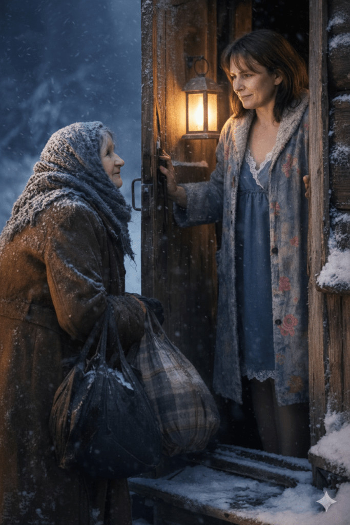 Jedne hladne noći, dok je razmišljala o svojoj sudbini, iznenada se čuo kucanje na vratima. Na pragu je našla staricu koja je bila smrznuta i drhtava tražeći sklonište od surove zime. Žena je bila u dubokom previranju. Nije imala mnogo, ali u svom srcu je znala da mora pomoći. Odbacila je sumnje i otvorila vrata, pozivajući staricu da uđe. Pružila joj je ono što je imala – komadić hleba, shvatajući da je to jedina stvar koju može ponuditi. Starica je s radošću prihvatila i zahvalila se, a zatim legla da se odmori, čvrsto držeći svoju torbu pored sebe. Ovaj trenutak nesebičnosti je bio ključan i pokazao je koliko je važno ne izgubiti veru u ljude, čak i kada se čini da je sve izgubljeno.
