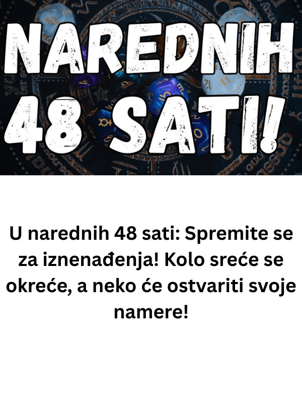 Poruka narednih 48 sati za sve horoskopske znakove je jasna: promjene su neizbježne, ali s pravim pristupom, one mogu donijeti pozitivne rezultate. Sudbina nagrađuje one koji vjeruju u sebe i suočavaju se s odgovornostima. Samo hrabar korak može okrenuti kolo sreće. Iskoristite ovu priliku da preispitate svoje odluke, postavite nove ciljeve i krenete naprijed s novom energijom.