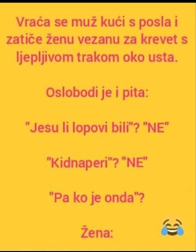 Zato, ne zaboravite na važnost humora u svakodnevnom životu. Uživajte u sitnicama, dijelite smijeh s onima koje volite i stvarajte uspomene koje će vas nasmijati i u budućnosti. Na kraju, svaka situacija, ma koliko ozbiljna bila, može se gledati iz drugačije perspektive ako joj pridodamo malo humora. Ovaj vic može poslužiti kao podsjećanje na to da je život pun nepredvidljivih trenutaka, ali uz dobar smijeh možemo prebroditi sve izazove i učiniti svaki dan boljim.